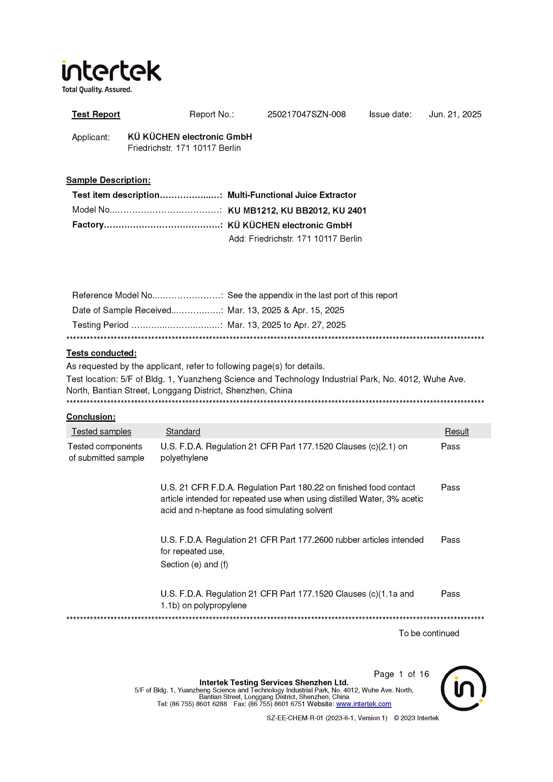 Customers who use Kü Küchen appliances are satisfied and keep coming back.